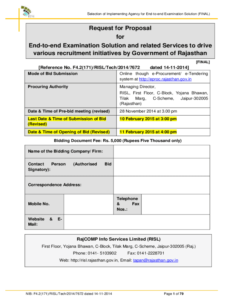 Get the free Request for Proposal for End-to-end Examination Solution ... - risl rajasthan gov