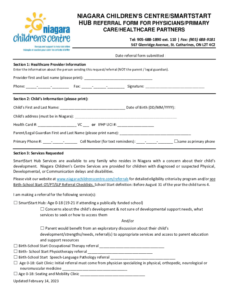 Get the free niagara children's centre/smartstart hub referral form for ...