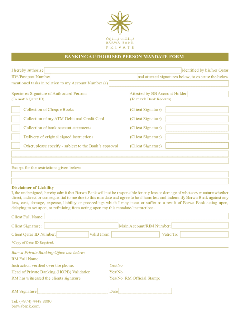 BANKING Authorized PERSON MANDATE FORM