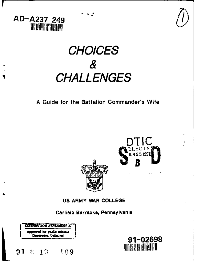 IivlililiADA237 1111111111(111111 iii!249 i!1111CHOICES & CHALLENGES A Guide for the Battalion Commander\'s Kinetic ELECTESJUN 25 1911US ARMY WAR COLLEGE Carlisle Barracks, PennsylvaniaUJlftd919102698