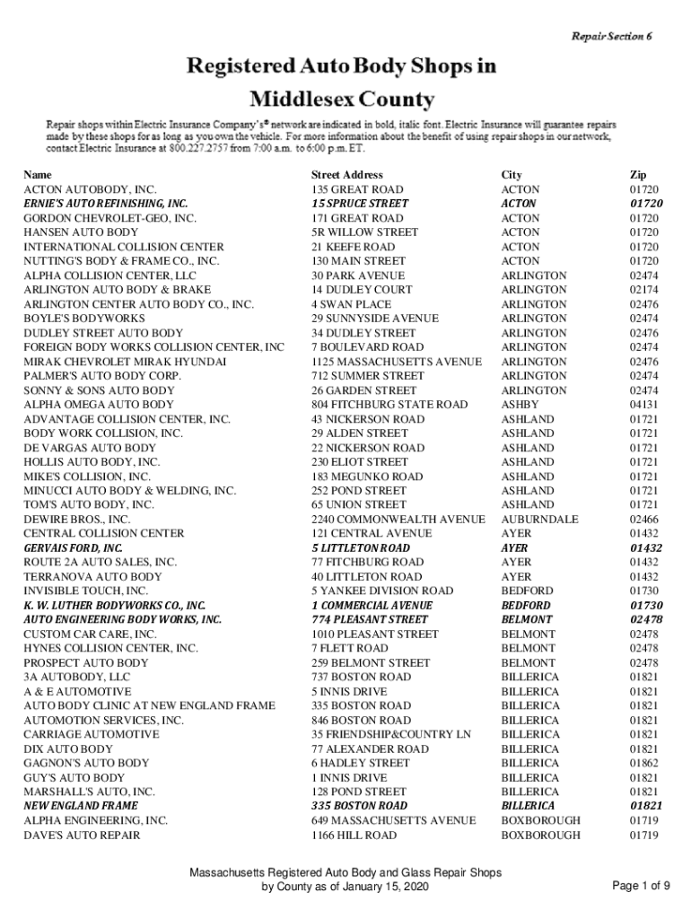 Get the free Name Street Address City Zip ACTON AUTOBODY, INC. ...