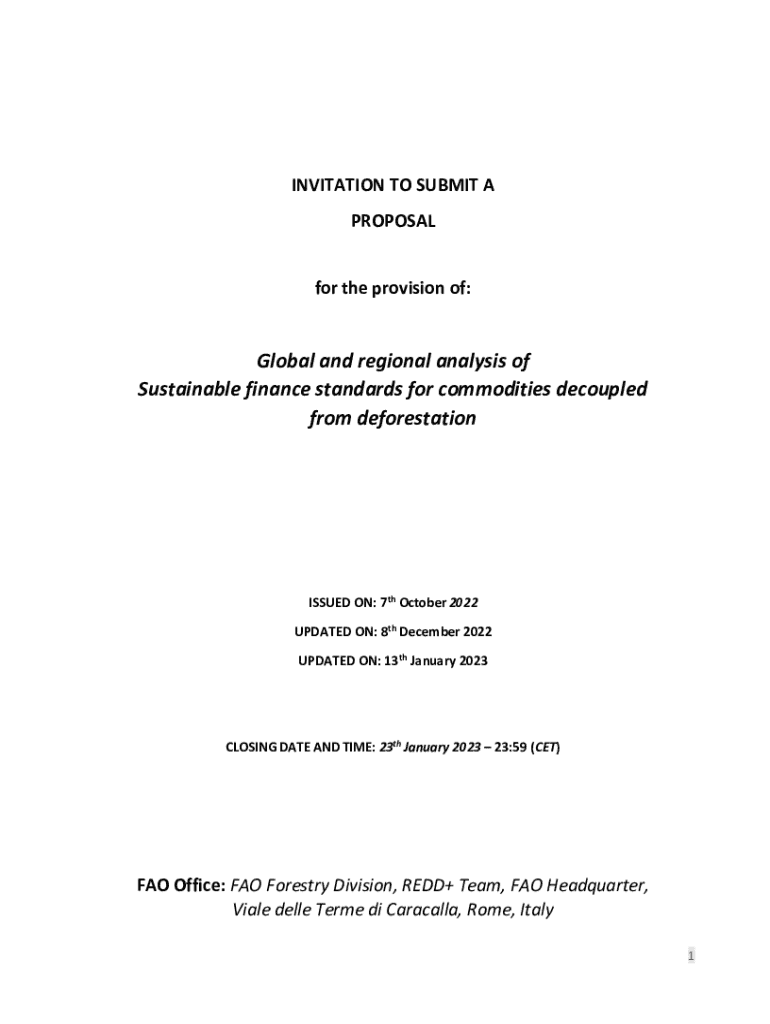 INVITATION TO SUBMIT A PROPOSAL for the provision of:Global and regional analysis of Sustainable finance standards for commodities decoupled from deforestationISSUED ON: 7th October 2022 UPDATED ON: