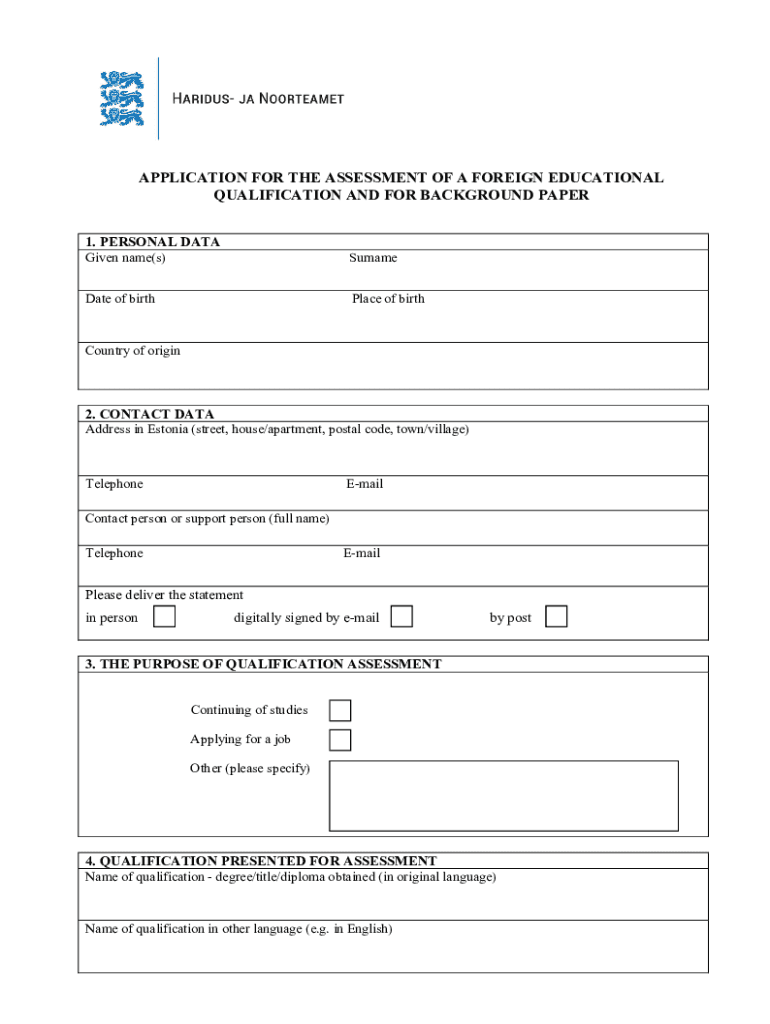 APPLICATION FOR THE ASSESSMENT OF A FOREIGN EDUCATIONAL