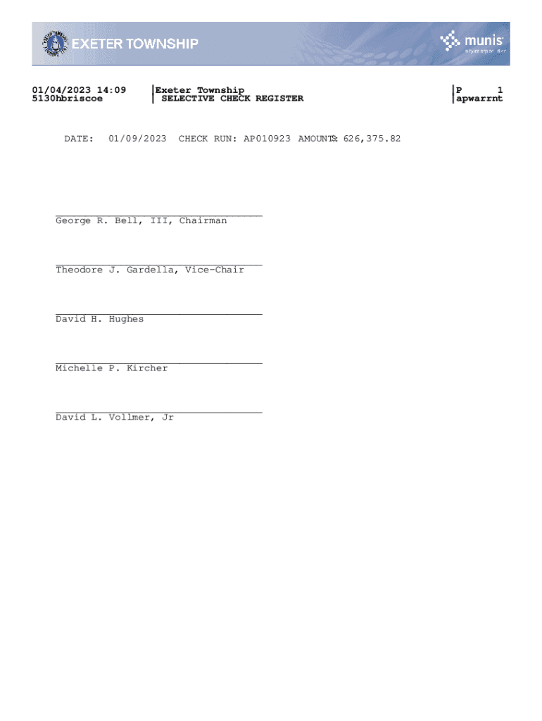 | SELECTIVE CHECK REGISTER01/09/2023CHECK RUN: AP010923 AMOUNT: