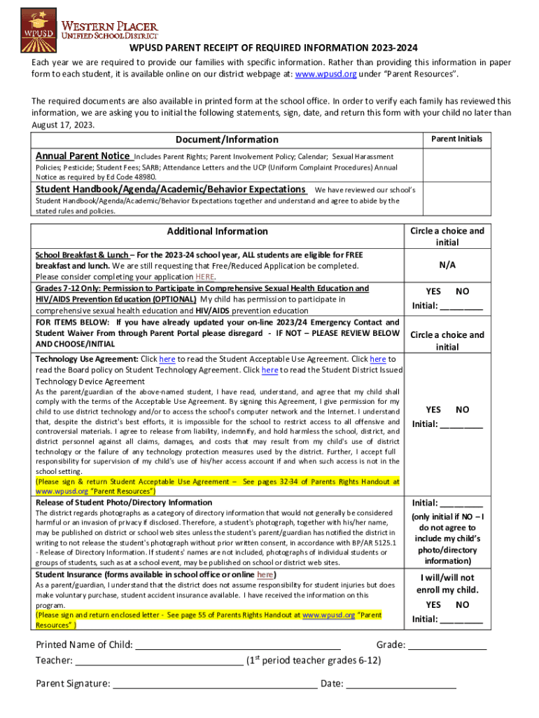formtoeachstudent, itisavailableonlineonourdistrictwebpageat:www.wpusd.orgunderParentResources.