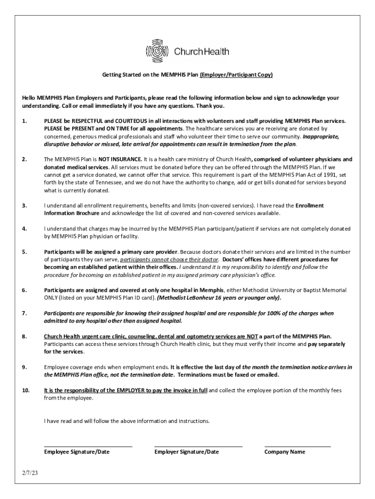 Getting Started on the MEMPHIS Plan (Employer/Participant Copy)Hello MEMPHIS Plan Employers and Participants, please read the following information below and sign to acknowledge your understanding.