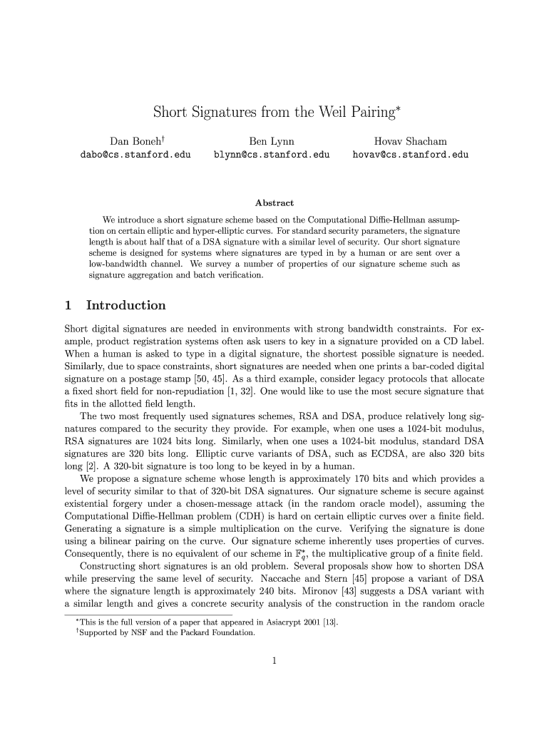 Get the free Short Signatures from the Weil Pairing