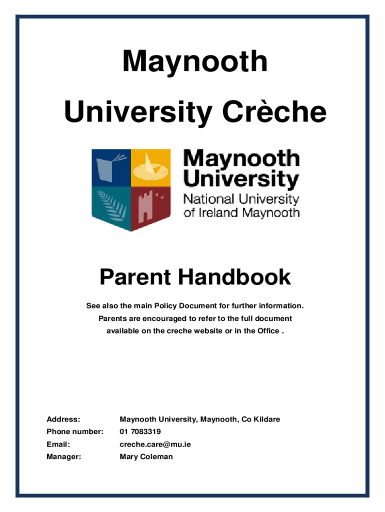 Read through the NUIM Creche Parents Handbook carefully and familiarize yourself with its contents.