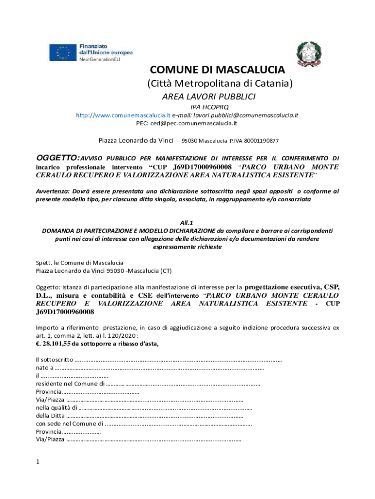 http://www.comunemascalucia.it email: lavori.pubblici@comunemascalucia.it