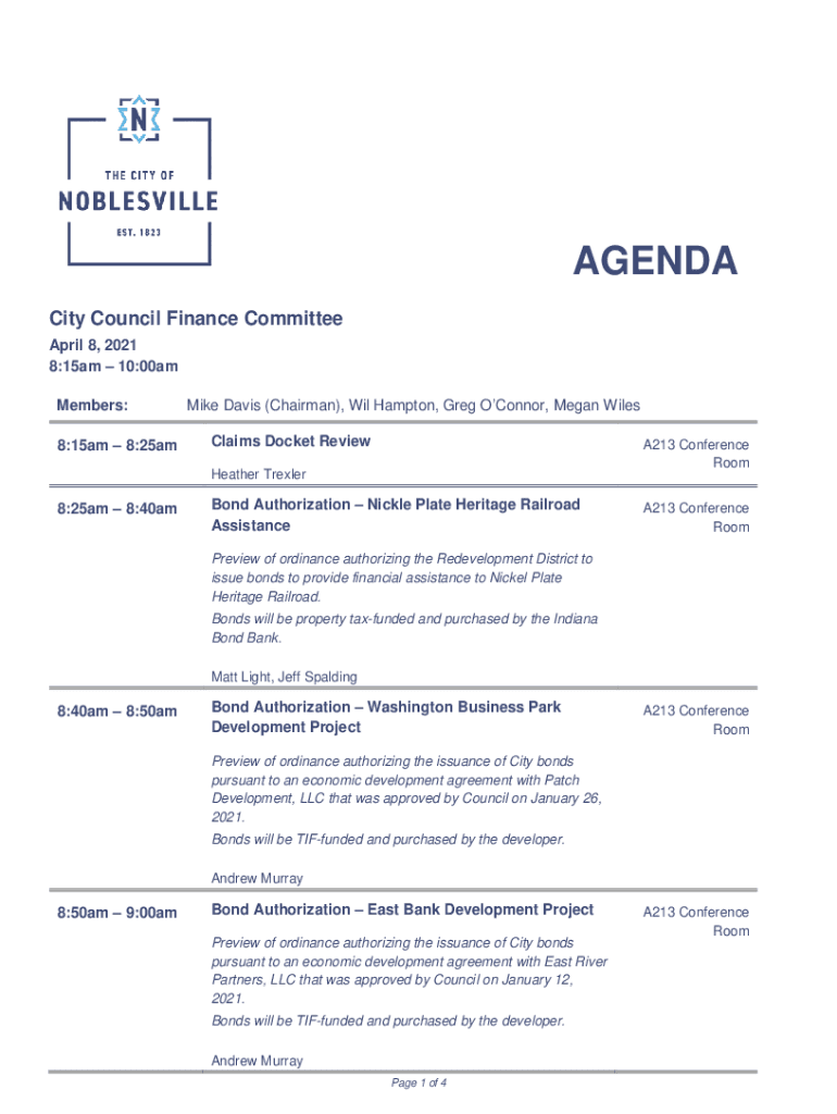 AGENDA City Council Finance Committee April 8, 2021 8:15am 10:00am Members: 8:15am 8:25amMike Davis (Chairman), Will Hampton, Greg O'Connor, Megan Wiles Claims Docket ReviewA213 Conference Room Heather