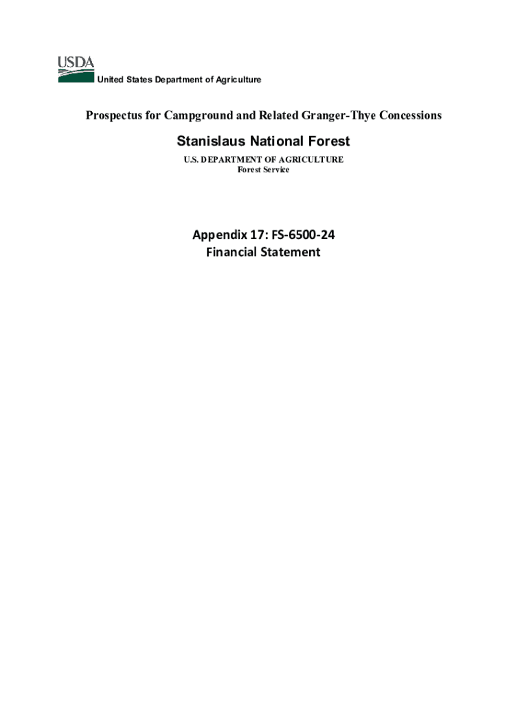 United States Department of AgricultureProspectus for Campground and Related Grangerize ConcessionsStanislaus National Forest U.S. DEPARTMENT OF AGRICULTURE Forest ServiceAppendix 17: FS650024 Financial