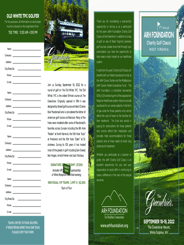OLD WHITE TPC GOLFER For tax purposes, all information on each player must be included on this registration form. TEE TIME: 11:30 AM 1:00 Name ___Company___Address___City/State/Zip___O L D W H I T