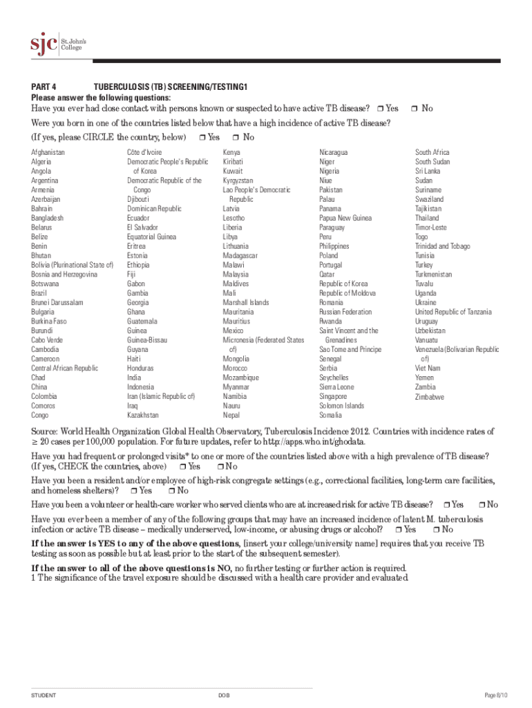 Annapolis tuberculosis TB screening can be filled out by visiting a healthcare provider who will administer the necessary tests.