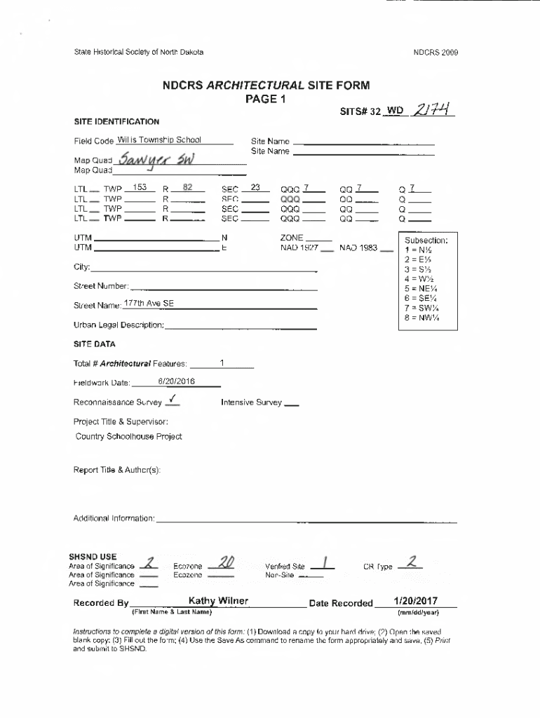 Get the free NDCRS ARCHITECTURAL SITE FORM PAGE 1 .