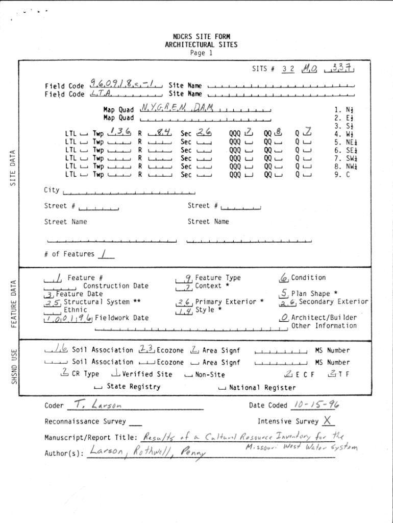 Get the free NDCRS Site Form Training Manual: Archeological Sites