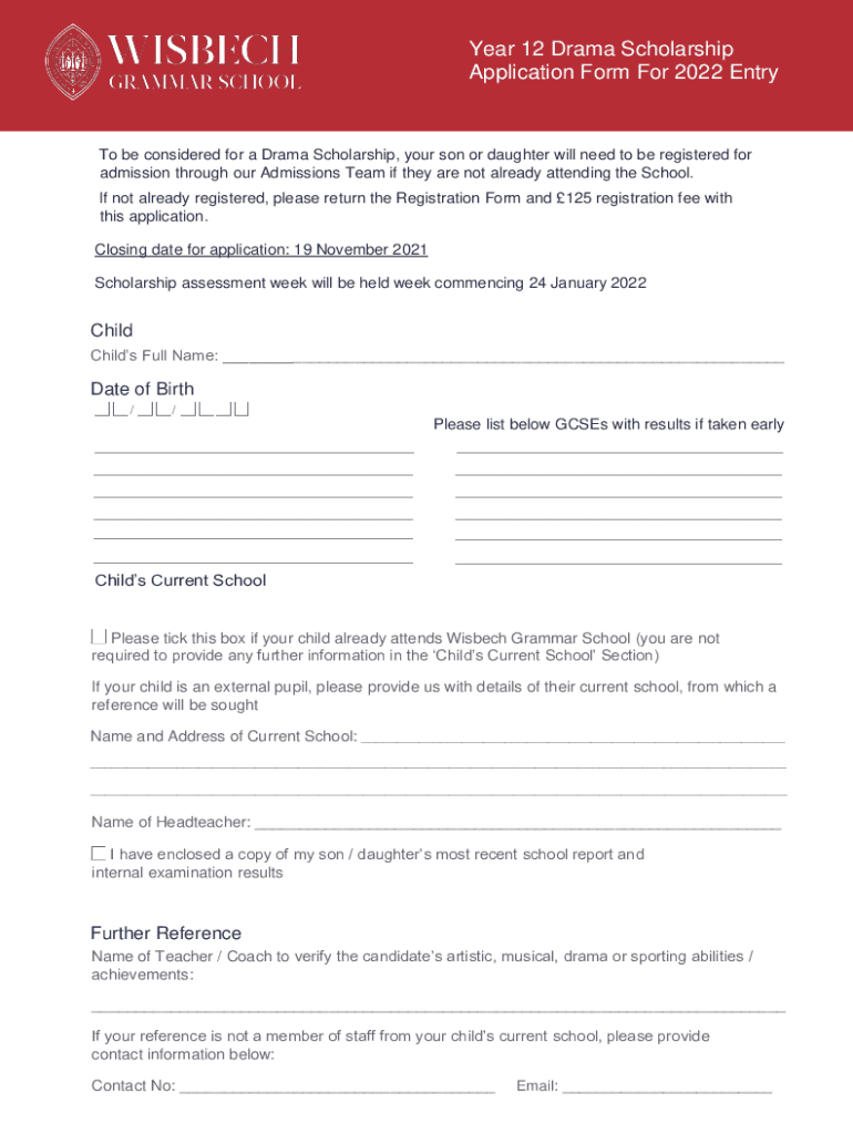 Year 12 Drama Scholarship Application Form For 2022 Entry be considered for a Drama Scholarship, your son or daughter will need to be registered for admission through our Admissions Team if they are