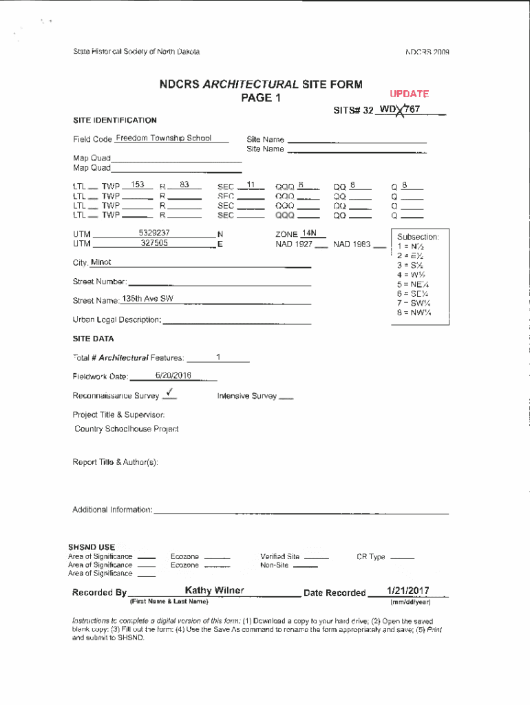 State Historical Society of North DakotaNDCRS 2009NDCRS ARCHITECTURAL SITE FORM