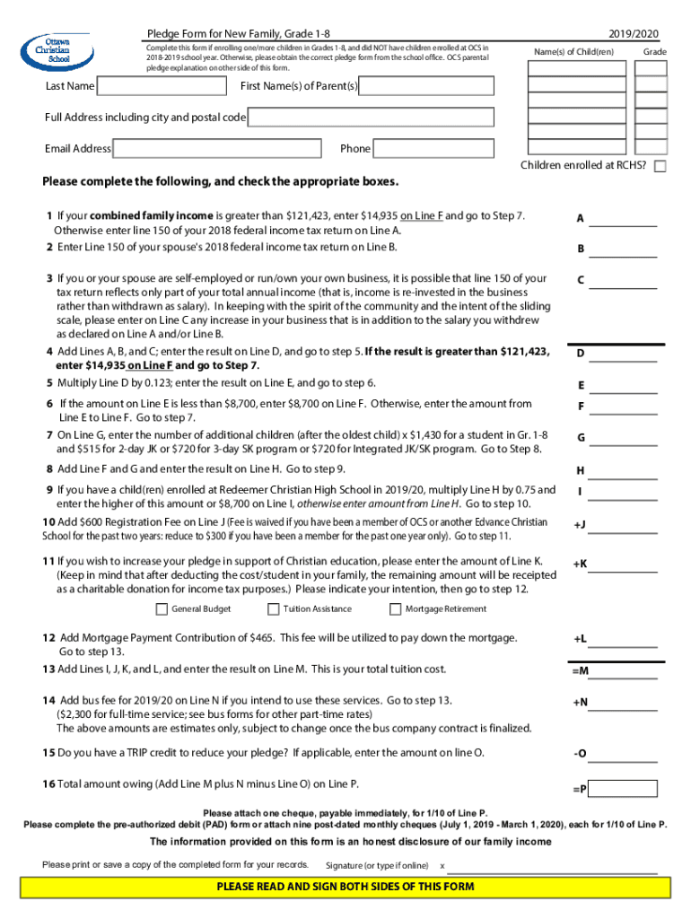 REGISTRATION PACKAGE 20192020 School Year Welcome to the 2019/2020 registration process at Ottawa Christian School. Your child(men) is(are) considered enrolled when all the following forms and documents