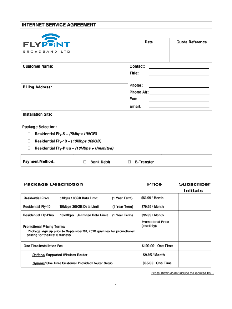 Anyone who is signing up for internet services from a provider will need to fill out an internet service agreement.