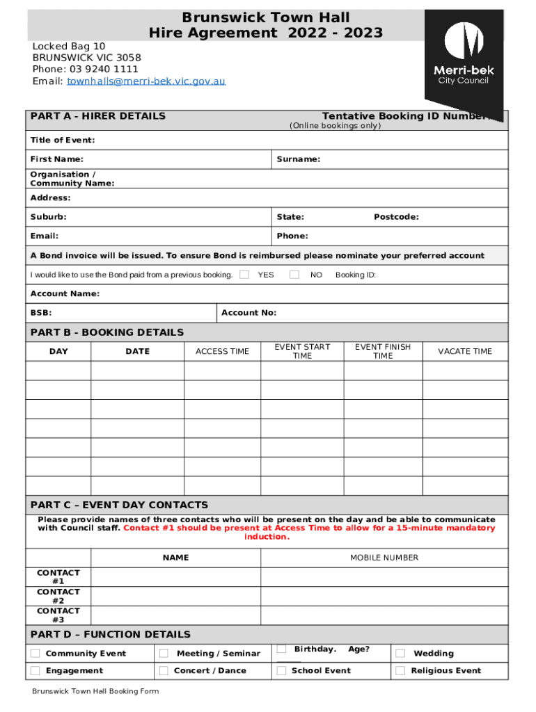 Template brunswick-town-hall-agreement-and-booking-.doc instructions