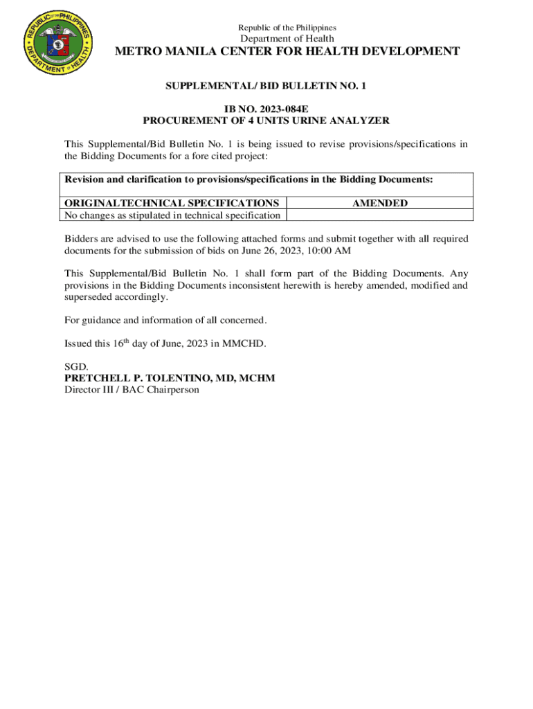 Get the free SUPPLEMENTAL/BID BULLETIN - ADDENDUM NO. 1