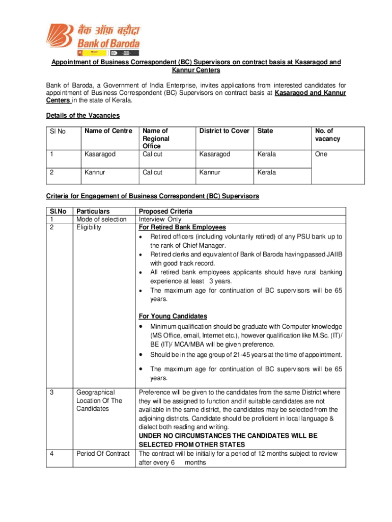 Get the free Bank of Baroda jobs for Business Correspondent ...