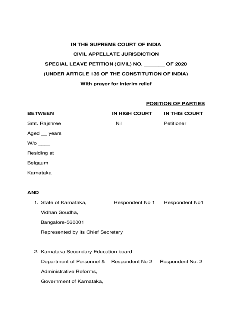 Get the free Special leave Petition under Article 136 of Constitution ...