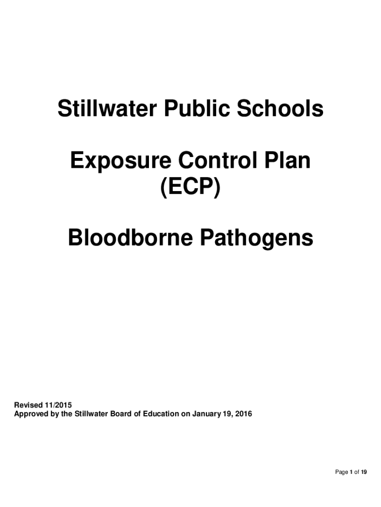 Stillwater Public Schools Exposure Control Plan (ECP) Blood-borne PathogensRevised 11/2015 Approved by the Stillwater Board of Education on January 19, 2016Page 1 of 19EXPOSURE CONTROL PLAN Page(s)