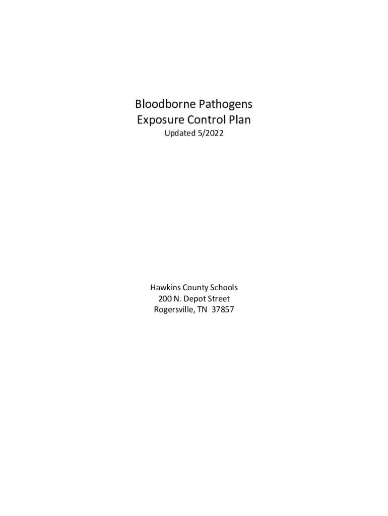 Blood-borne Pathogens Exposure Control Plan Updated 5/2022Hawkins County Schools 200 N. Depot Street Ayersville, TN 37857Hawkins County Schools (HCS)Exposure Control Plan The Hawkins County School