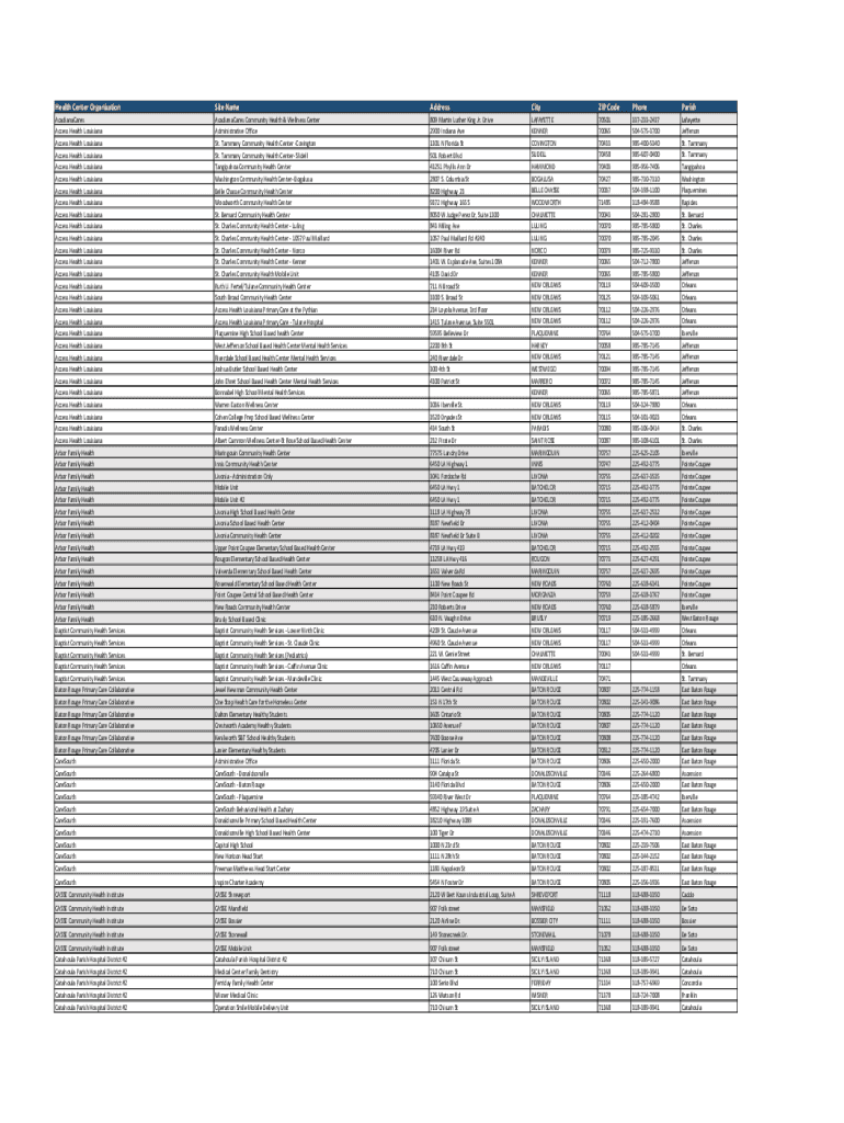 Health Center Organization Site NameAddressCityZIP CodePhoneParishAcadianaCares