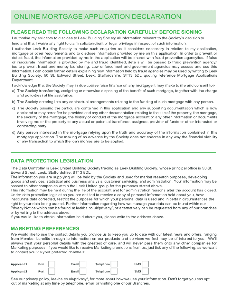 ONLINE MORTGAGE APPLICATION DECLARATION PLEASE READ THE FOLLOWING DECLARATION CAREFULLY BEFORE SIGNING I authorize my solicitors to disclose to Leek Building Society all information relevant to the