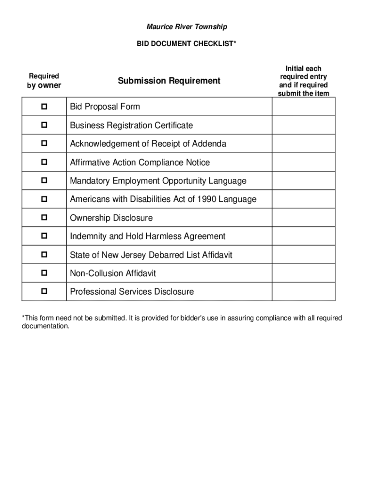 BID DOCUMENT CHECKLIST×Required