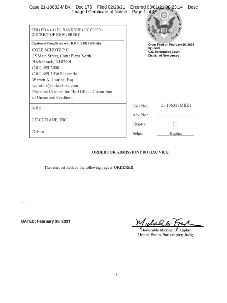 Case 2110632MBKDoc 175 Filed 02/28/21 Entered 03/01/21 00:23:14 Imaged Certificate of Notice Page 1 of 4DescUNITED STATES BANKRUPTCY COURT DISTRICT OF NEW JERSEY Caption in Compliance with D.N.J.