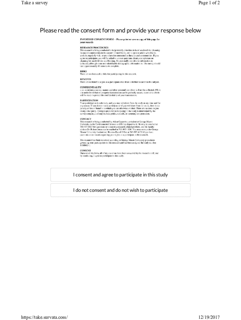 Take a survey Page 1 of 2Please read the consent form and provide your response below consent and agree to participate in this study