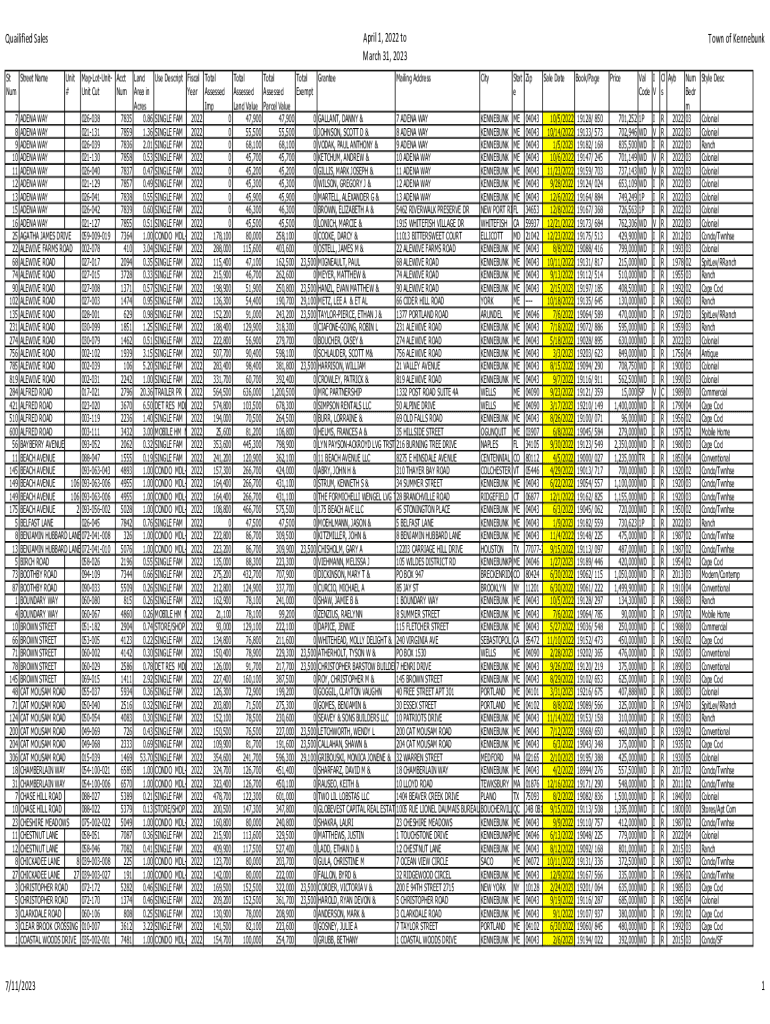 April 1, 2022, to March 31, 2023Quailified Sales St Street Name Sum 7 8 9 10 11 12 13 15 16 25 22 68 74 90 102 135 231 274 756 785 819 284 421 510 600 56 11 145 149 149 175 5 8 13 5 73 87 1 4 10 66