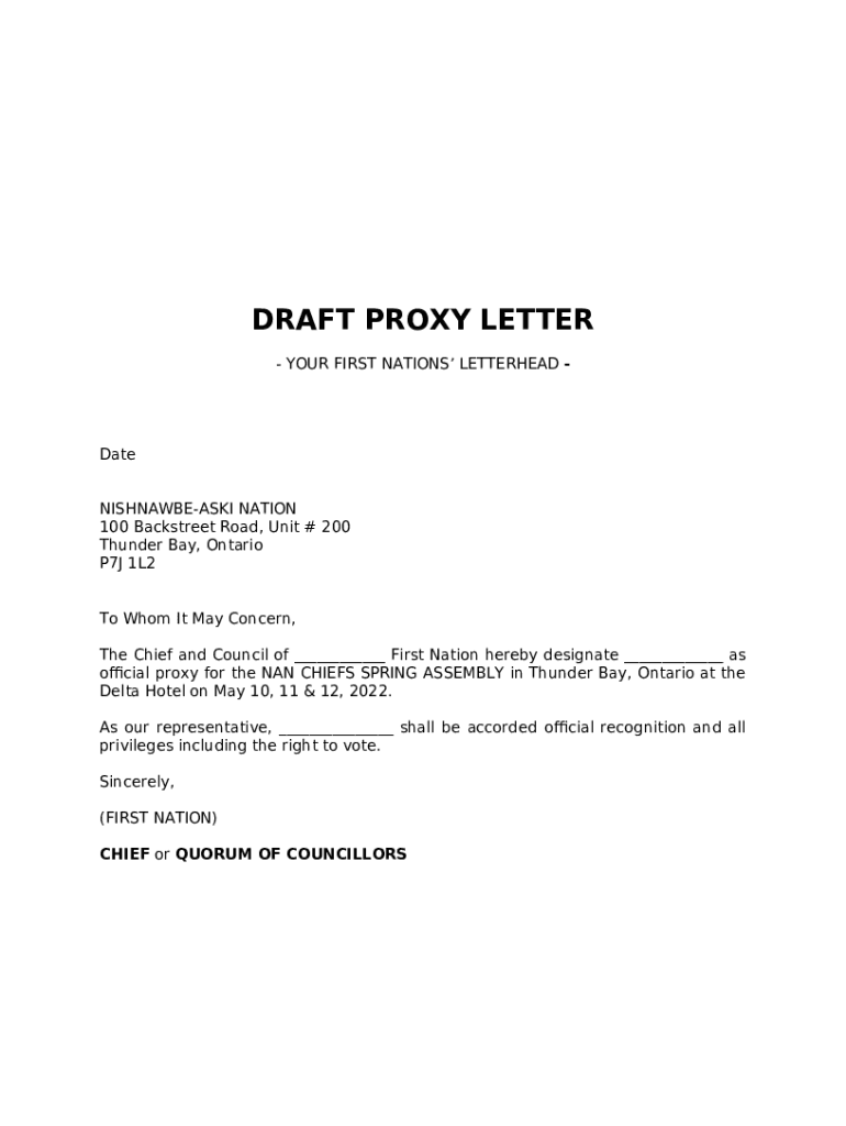 Instructions for the form Nishnawbe Aski Nation Chief's Assembly January 17-19 ...