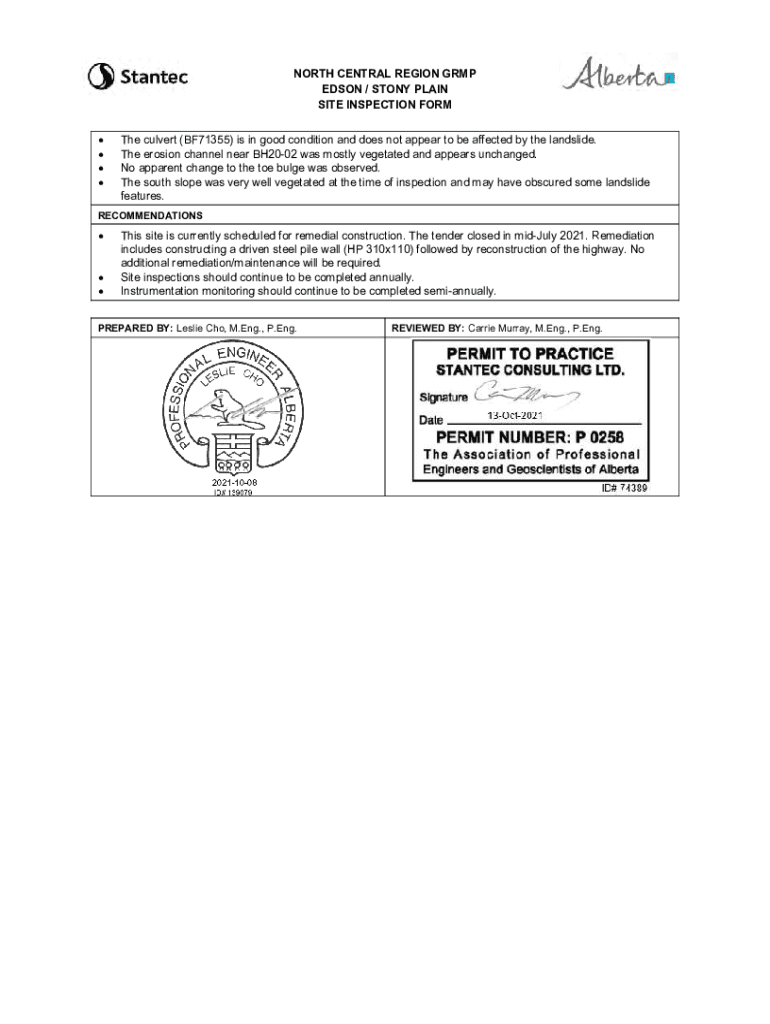 Get the free north central region grmp edson / stony plain site inspection form