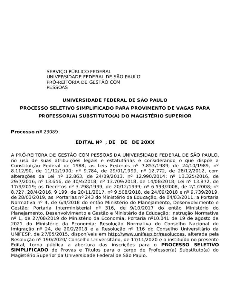 Frequently asked questions about the form Vagas para Professor Substituto do Ensino Superior