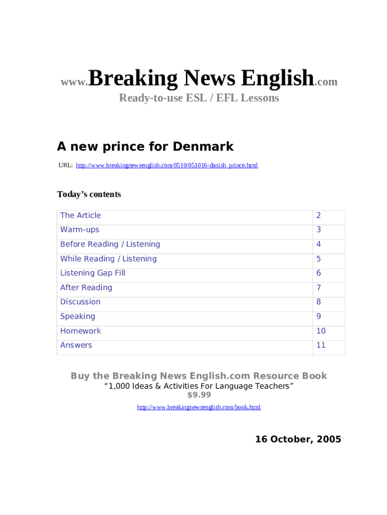 - Get the Breaking News English ESL Lesson Plan on Homework form in PDFfiller’s catalogue.