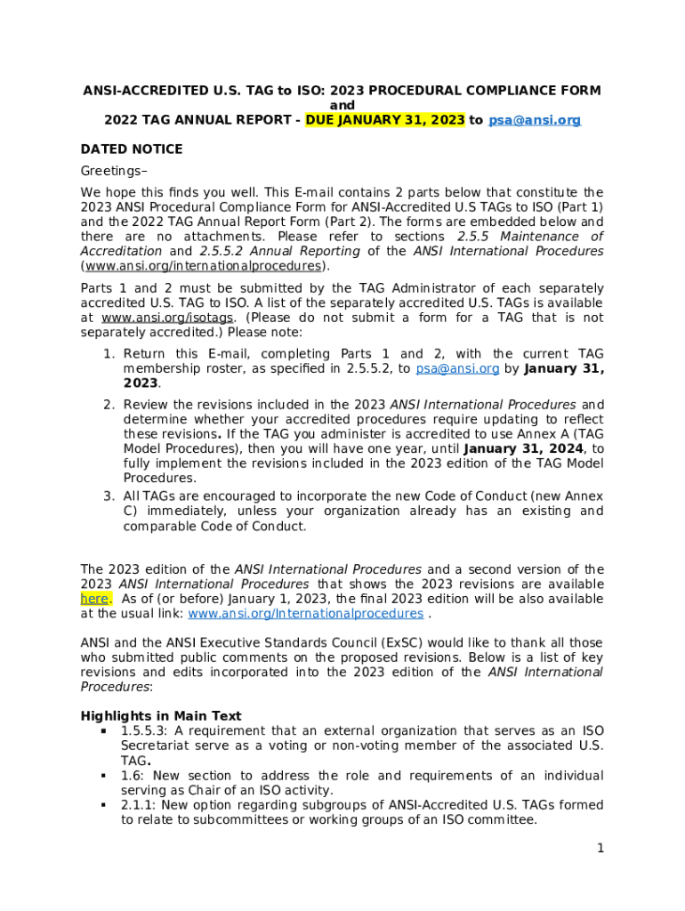 Instructions for the 2023 TAG Compliance and 2022 TAG Annual Report - Word version form