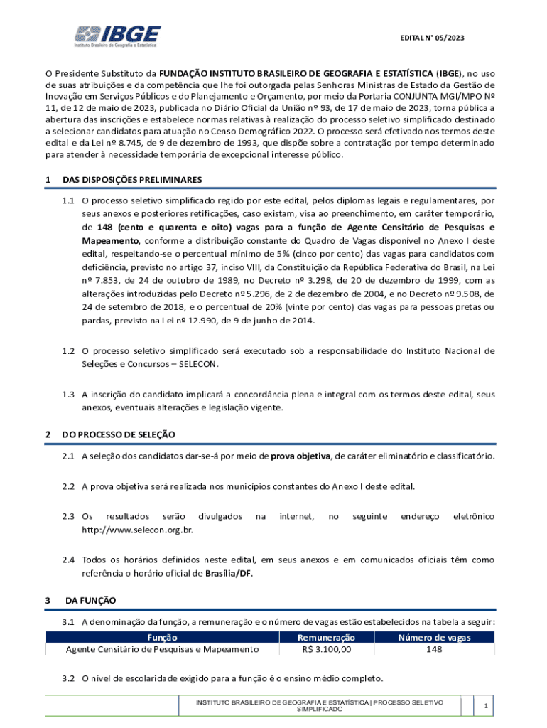 EDIT AL N 05/2023O President Substitute the FUND AO INSTITUTE Brasília DE GEORGIA E STATISTICS (INGE), no us ode seas attributes e the competence Que the for outorgada peas Señoras Ministers de