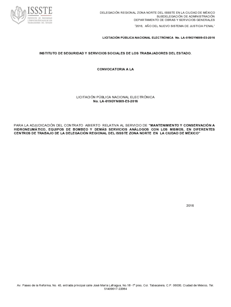2016, AO DEL NERO SYSTEM DE JUSTICE PENALLICITACIN PBL ICA NATIONAL