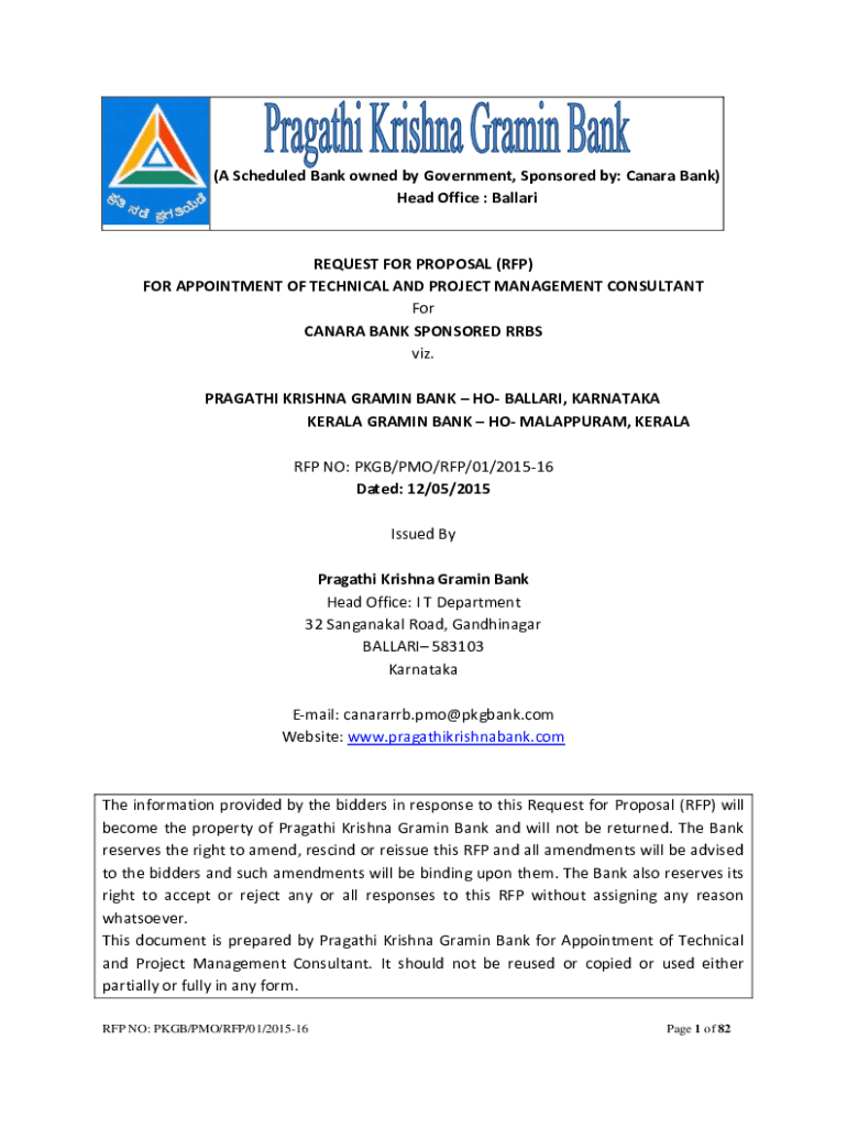 Head Office : BallariREQUEST FOR PROPOSAL (RFP)
