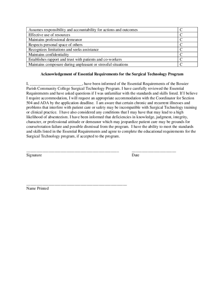 How to fill out surgical tech essential requirements