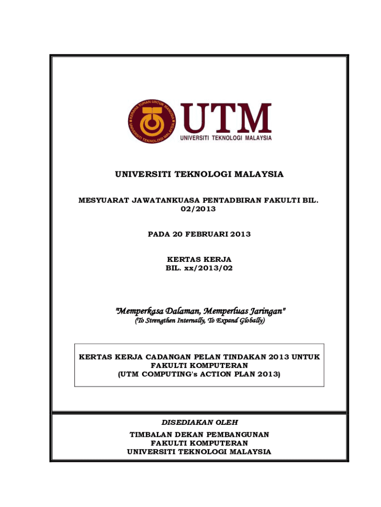 The faculty members and staff of Universiti Teknologi Malaysia are required to file the mesyuarat.