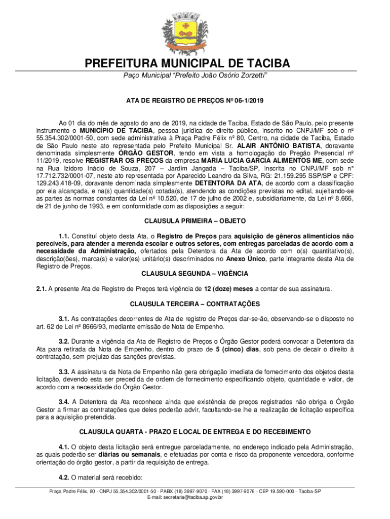 Obtenha o gratuito Ao 01 dia do ms de agosto do ano de 2019, na cidade de Taciba, Estado de So Pa...