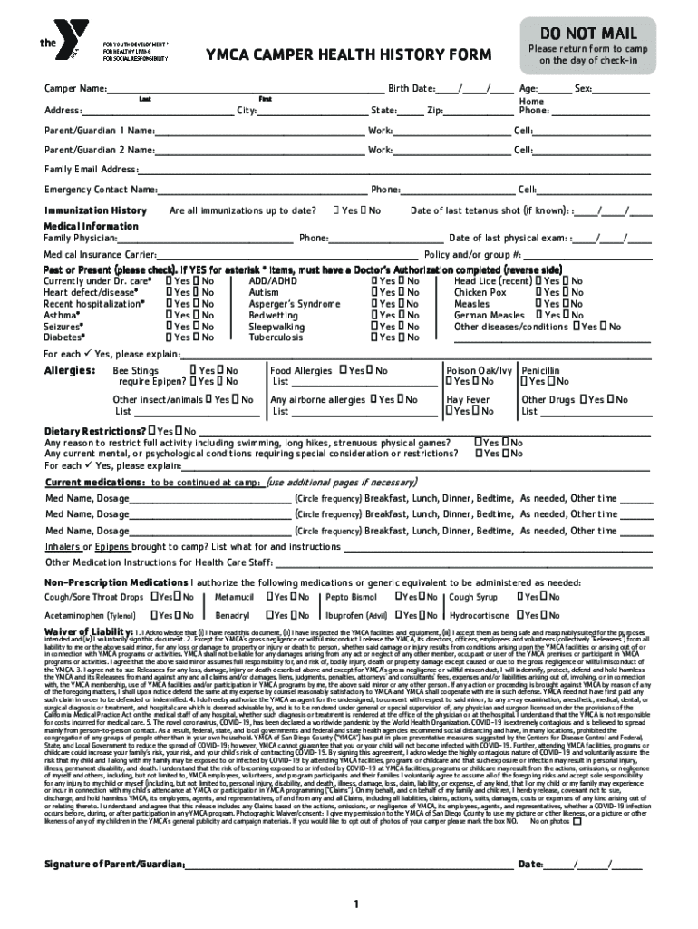 To fill out YMCA Camp Surf paperwork, parents or legal guardians must provide information about their child's medical history, emergency contacts, and any dietary restrictions or allergies.