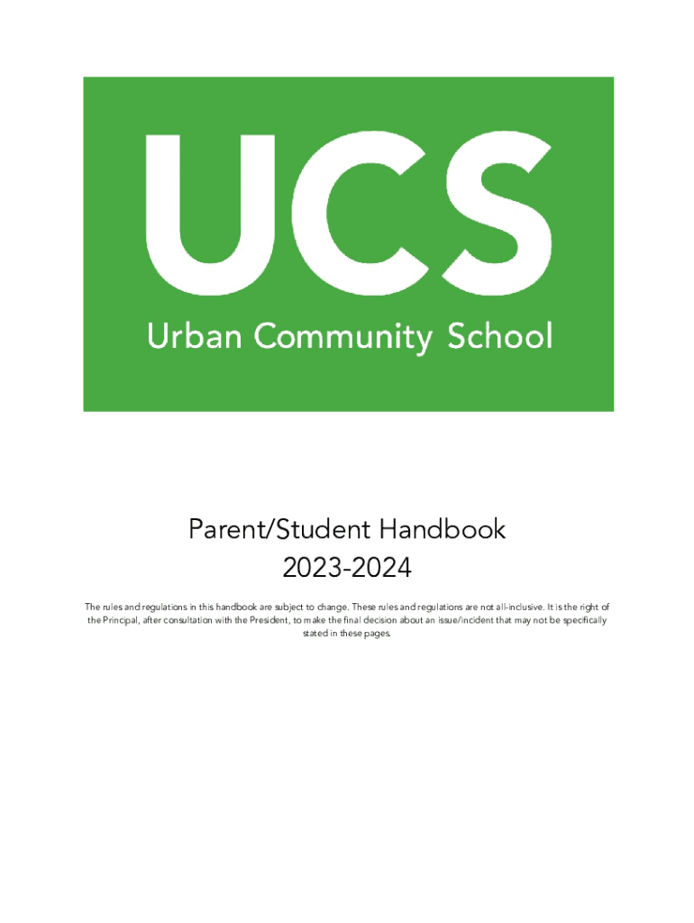 Parent/Student Handbook 20232024 The rules and regulations in this handbook are subject to change. These rules and regulations are not all inclusive. It is the right of the Principal, after consultation
