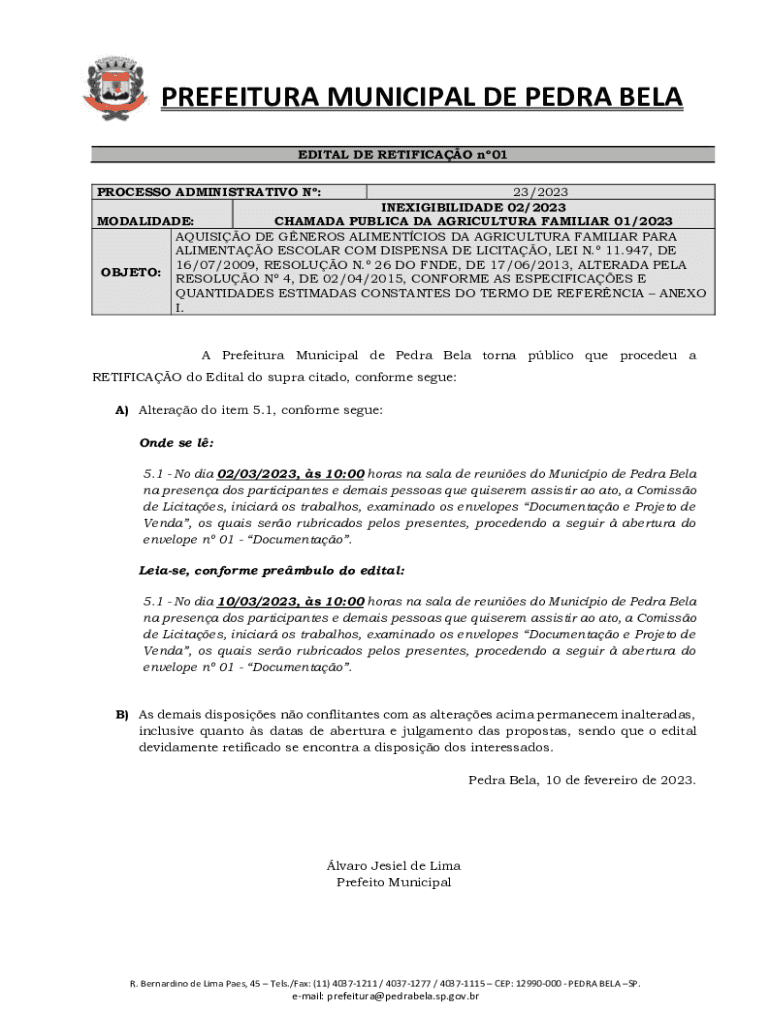 PREFECTURE MUNICIPAL DE PEDRO BELA