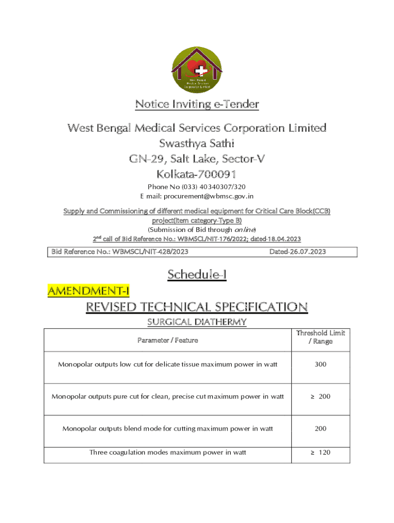 Get the free Notice Inviting e-Tender Government of West Bengal Chief ...